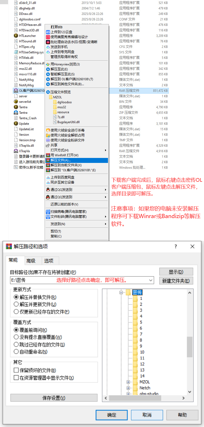 如果您的电脑未安装解压程序可下载Winrar或Bandizip(点击跳转下载)